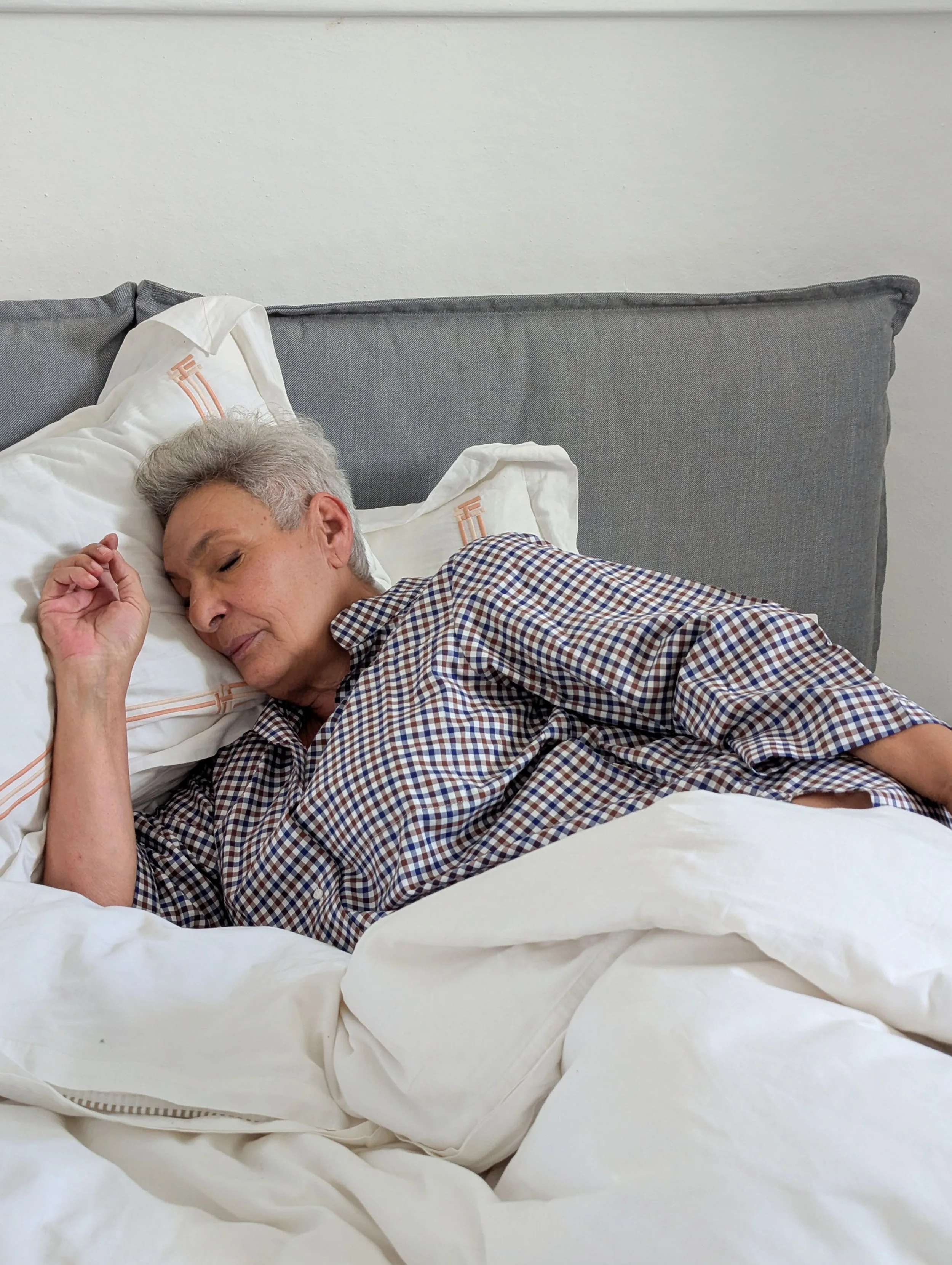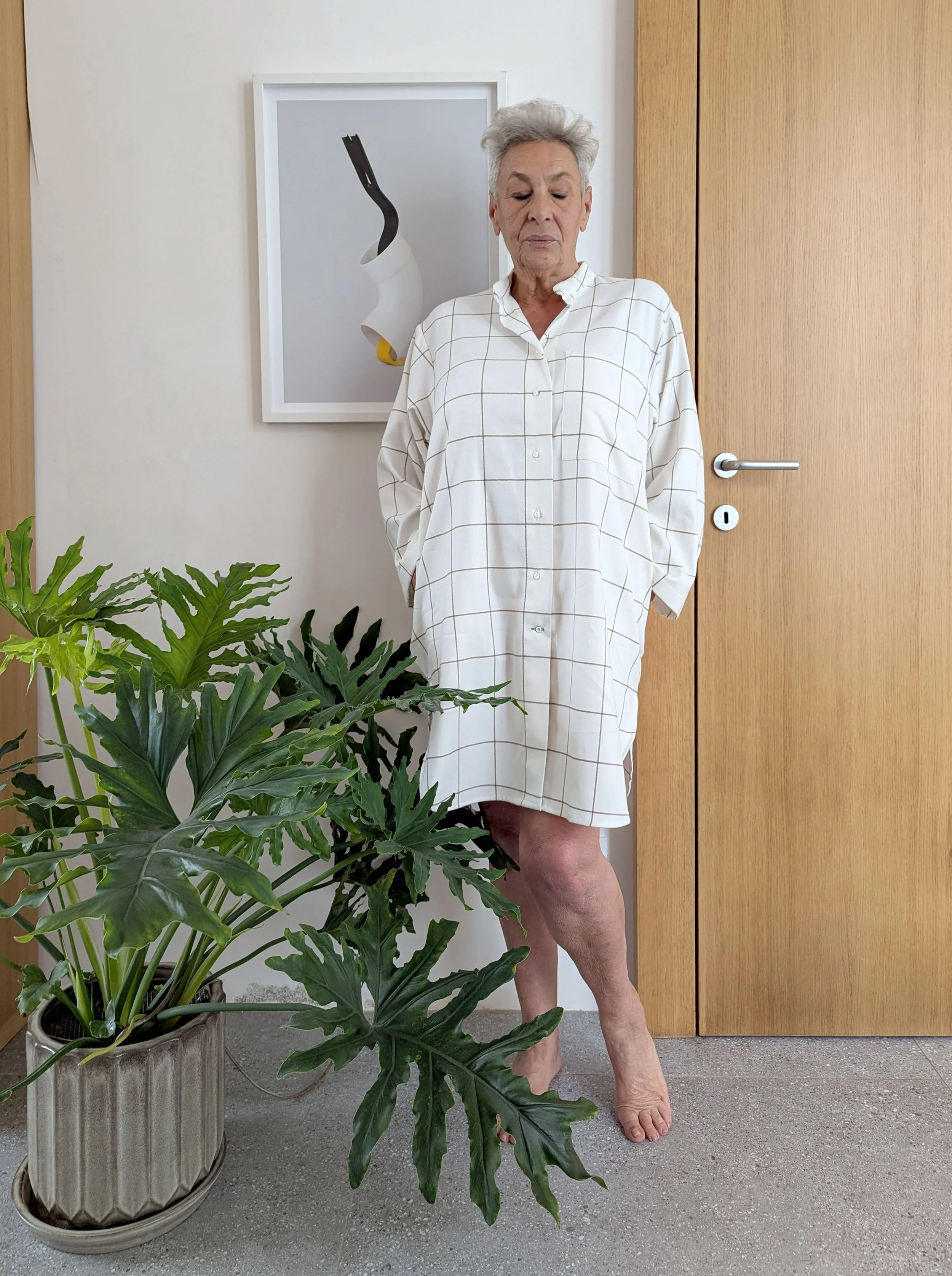 I started Anonimo with the design of a nightshirt because I couldn’t find one that had everything I wanted in a nightshirt: comfort, cooling, great style and high quality. I wanted a nightshirt that I could wear into the day, so I made it longer with pockets that are hugely useful. The style is oversize and slightly androgynous so everyone can wear it. I started with lightweight breathable cotton but since then have branched into heavier wool and cashmere blends, for winter.